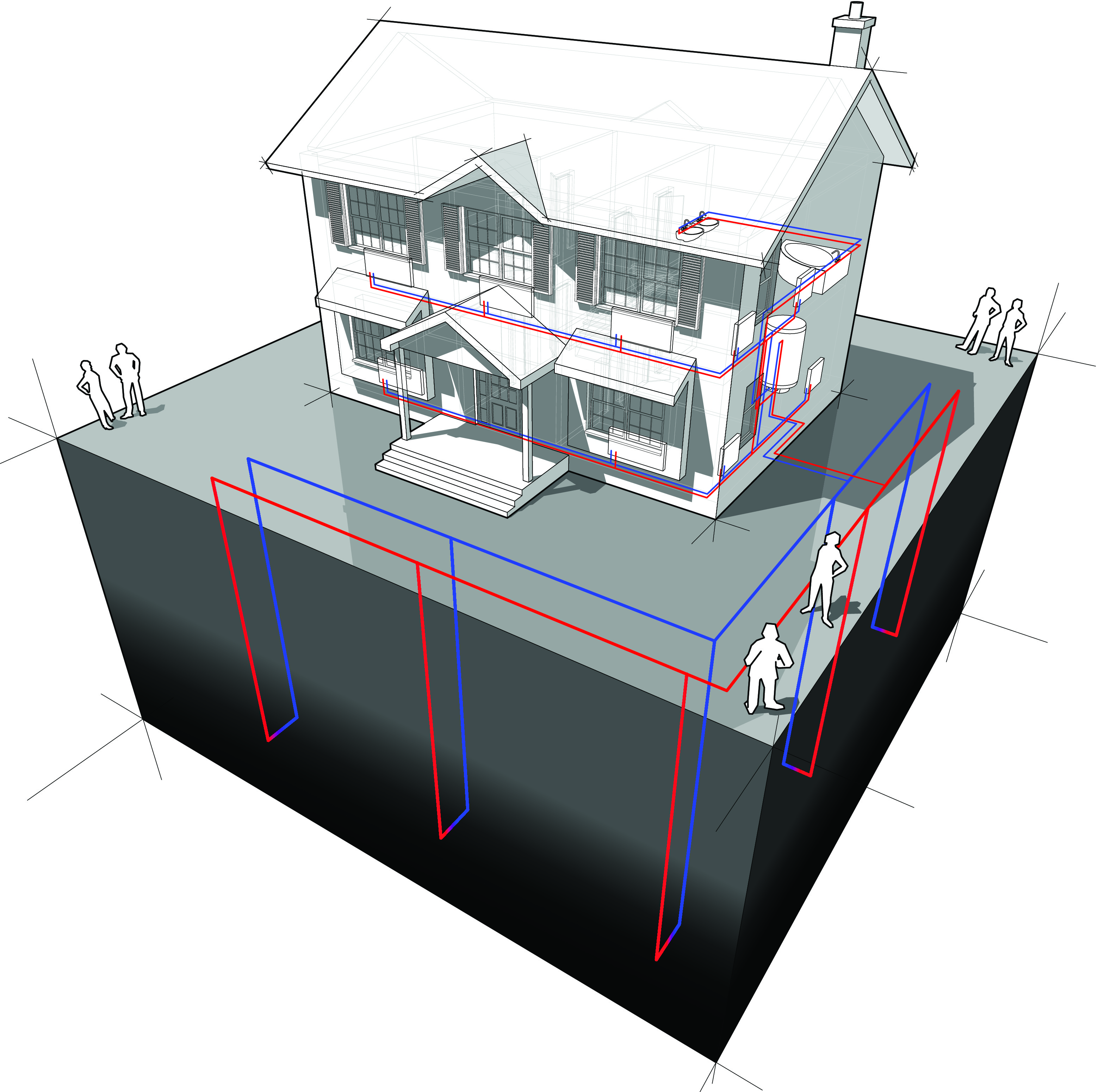 Geoexchange systems may employ either a vertical or horizontal ground loop heat exchanger to reject or absorb heat from the ground. A vertical loop (right) is often the only option in space-constrained urban settings. It is typically more expensive to implement but can be associated with improved performance due to the more stable ground temperatures at greater depths. In contrast, a horizontal loop (left) is typically less expensive to implement but it suffers from adverse seasonal fluctuations in ground temperatures occurring near the ground surface. There is a lack of research that experimentally examines both types of ground loop for the same study site. This study attempted to fill that knowledge gap by experimentally comparing the performance of a horizontal loop with that of a vertical loop, each being attached to the same ground source heat pump and distribution system at the Living City Campus’ Archetype Sustainable House.