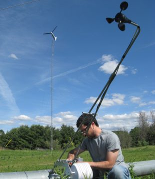 Small-scale wind turbines are typically much less cost-effective than their utility-scale counterparts but do have important niche applications, especially in remote or northern off-grid locations and microgrids. The Living City Campus is home to Ontario’s only small-scale wind turbine test site. While the site is equipped with the infrastructure and instrumentation to analyze wind turbines according to the IEC 61400 standard, the key research at the facility goes beyond wind turbine performance characterization and is increasingly focused on the incorporation of wind turbines into a smart microgrid environment. In this context, small-scale wind turbines are an important complimentary power source to solar photovoltaics that can help to promote a more resilient and robust microgrid.