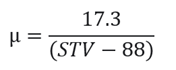 to evaluate the anti-icing product effect. It was also measured every hour after applying the de-icing product until bare pavement was achieved. SlipAlert Values (STV) were converted to Coefficient of Friction (µ) with the formula below, which was provided by the manufacturer.