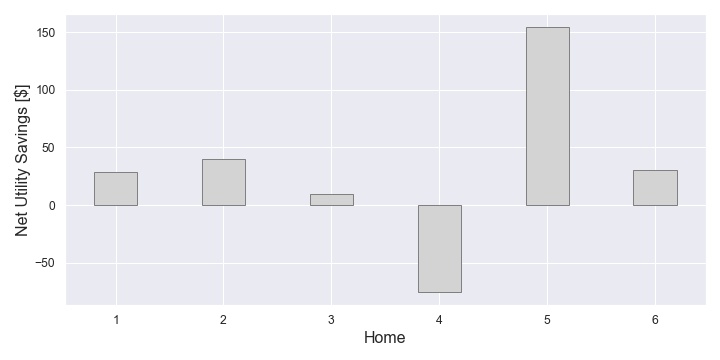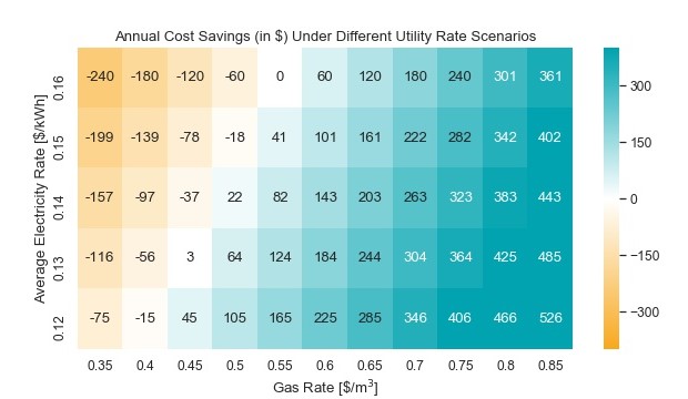 Figure 39. The net savings (or increase) was evaluated for different potential utility rate scenarios that may occur over the system lifetime. Note that positive values represent savings and negative values are an increase.