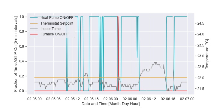 - Setting the “Compressor Min Outdoor Temperature” too high can limit heat pump utilization. This was noted in Home 3. The system automatically reverted to the furnace in temperatures below -4°C, but it was clear the CCASHP would have been capable of meeting the setpoint for much of the time in colder temperatures where the furnace was used.